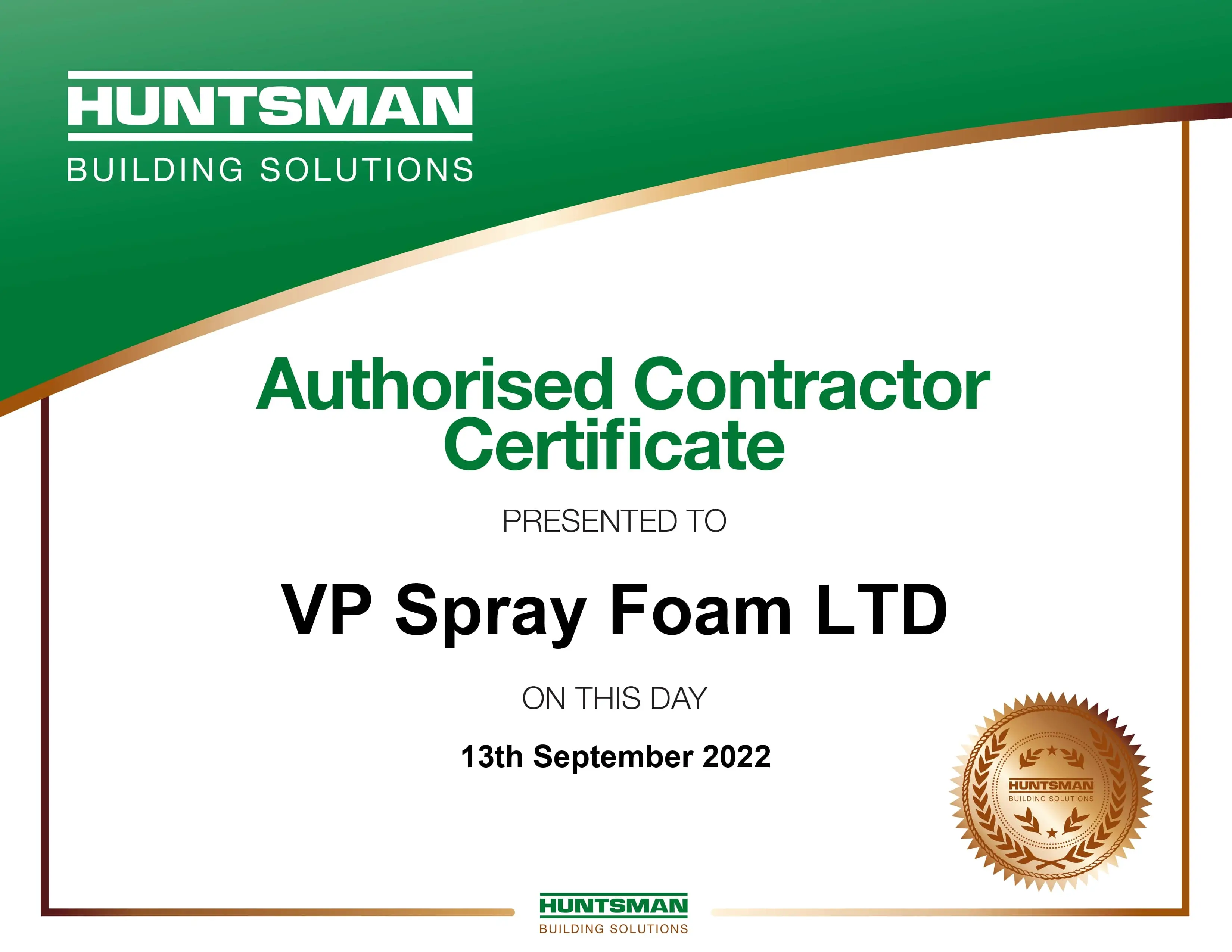 VP Foam Spray is proud to be an authorized installer and contractor recognized by Huntsman Building Solutions, a leading manufacturer of innovative insulation materials. Our partnership with Huntsman signifies our commitment to using top-tier products and adhering to the highest industry standards in every project we undertake.