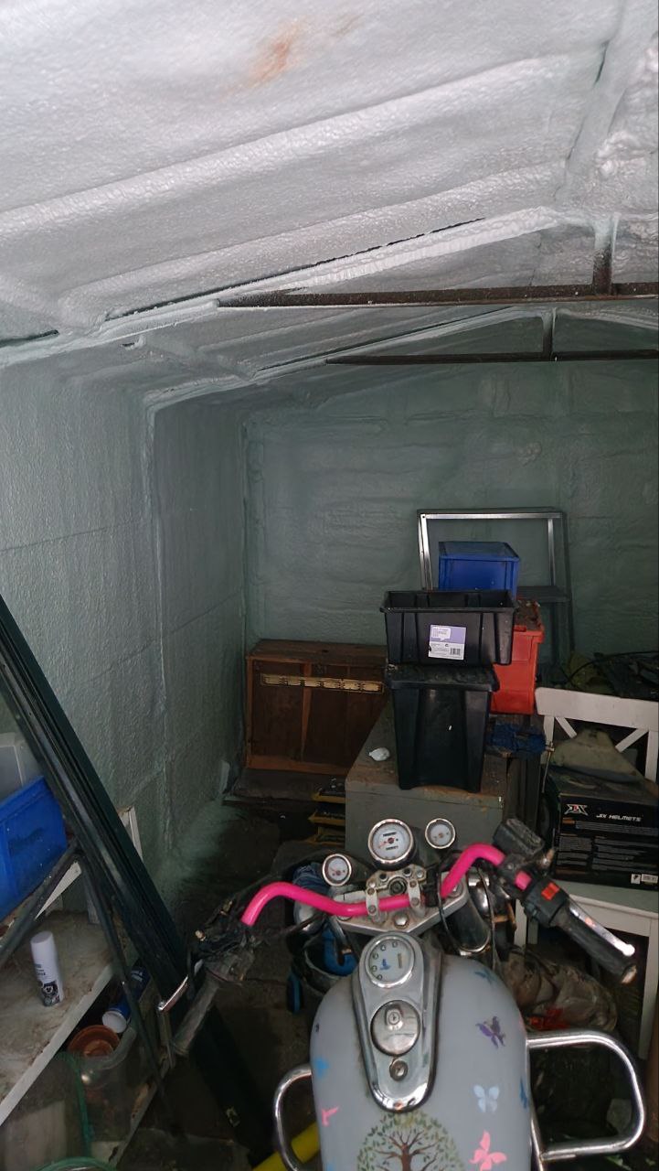 Spray foam insulation is ideal for concrete structures like garages, as it enhances thermal performance and provides a durable, long-lasting barrier against the elements. With the new insulation in place, this garage is now better equipped to store sensitive items and can even be converted into a workshop or hobby area without worry about cold or damp. VP Foam Spray's expertise ensured a seamless installation, transforming this concrete garage into a well-insulated, practical space.