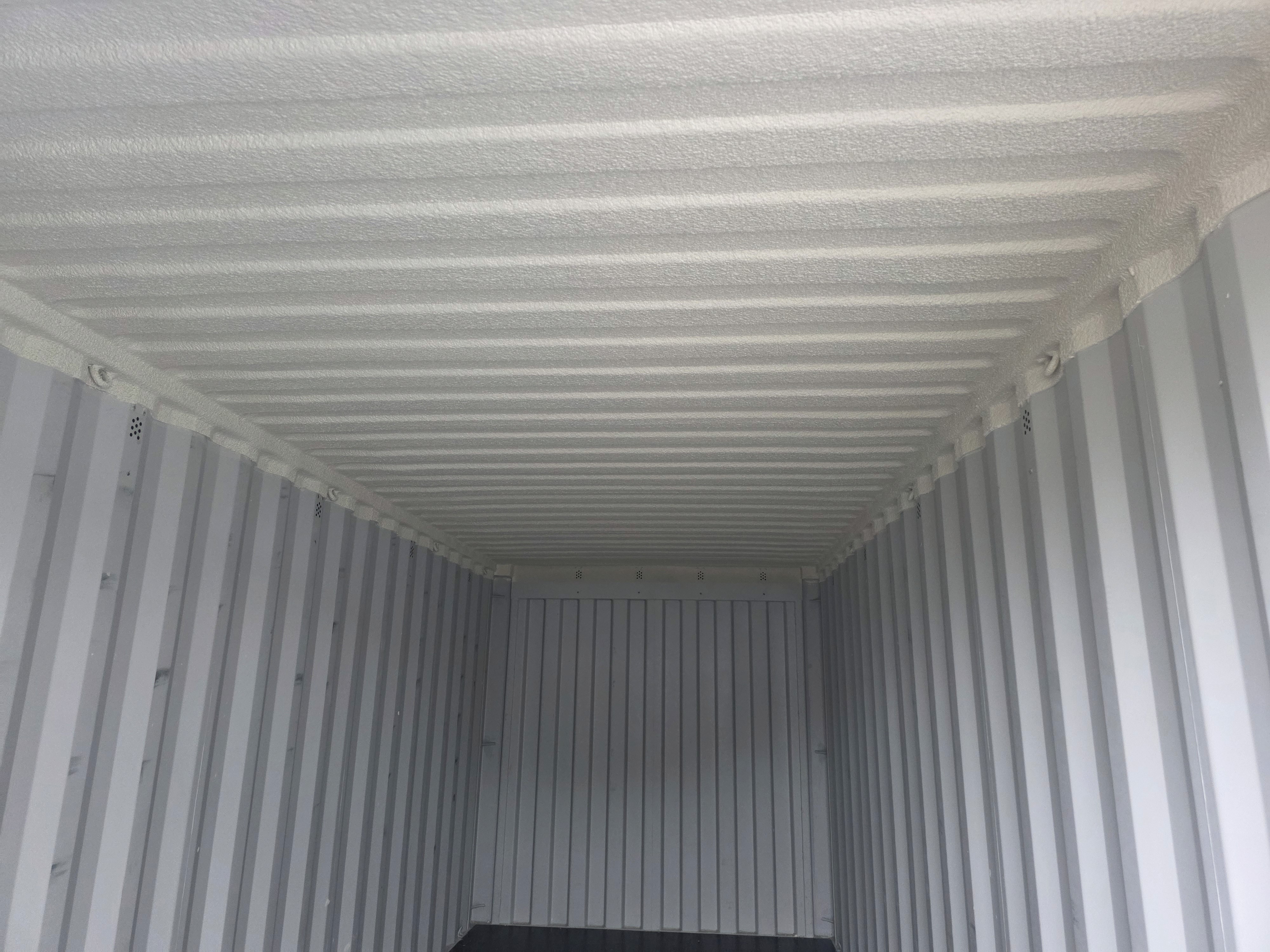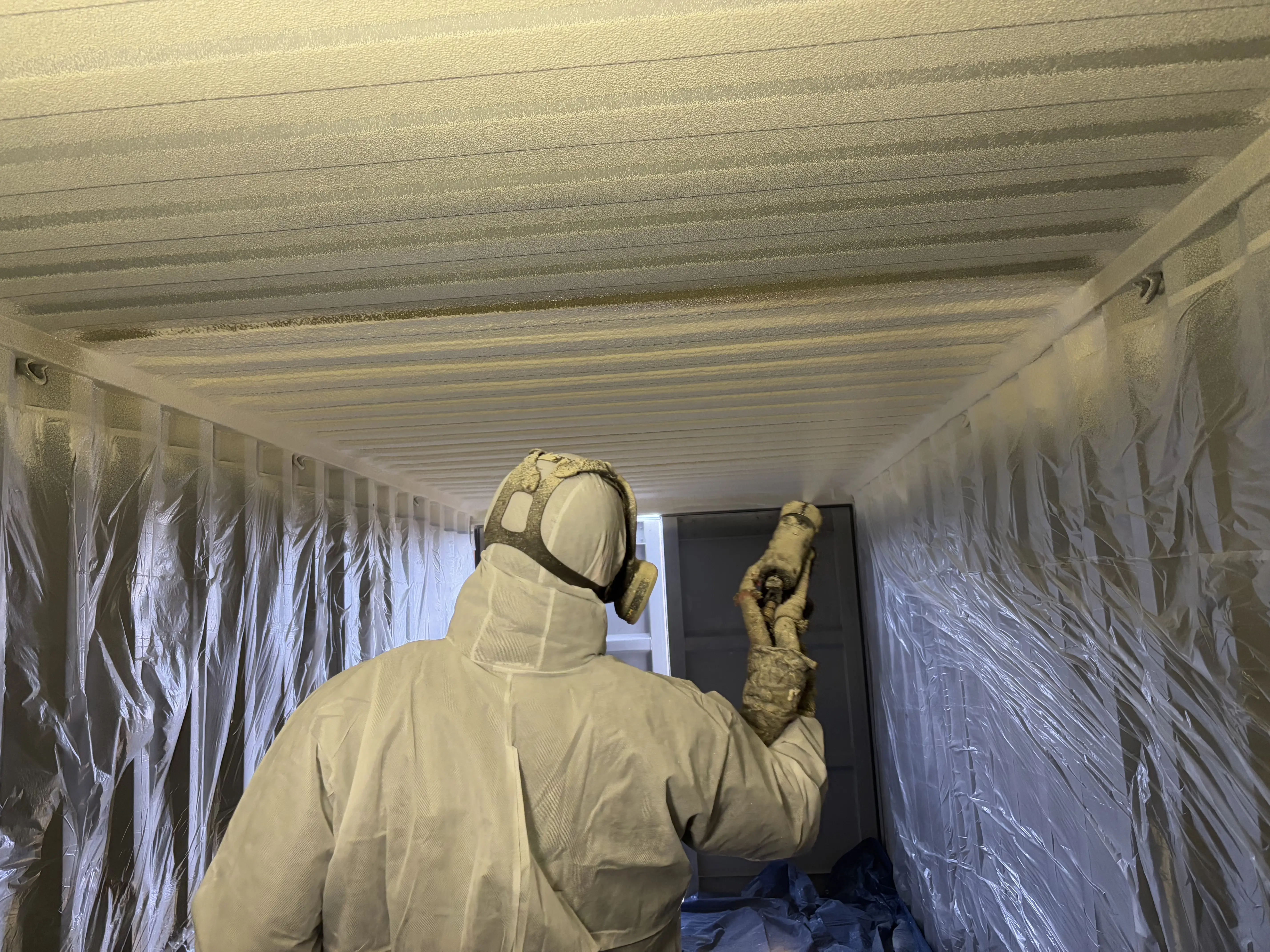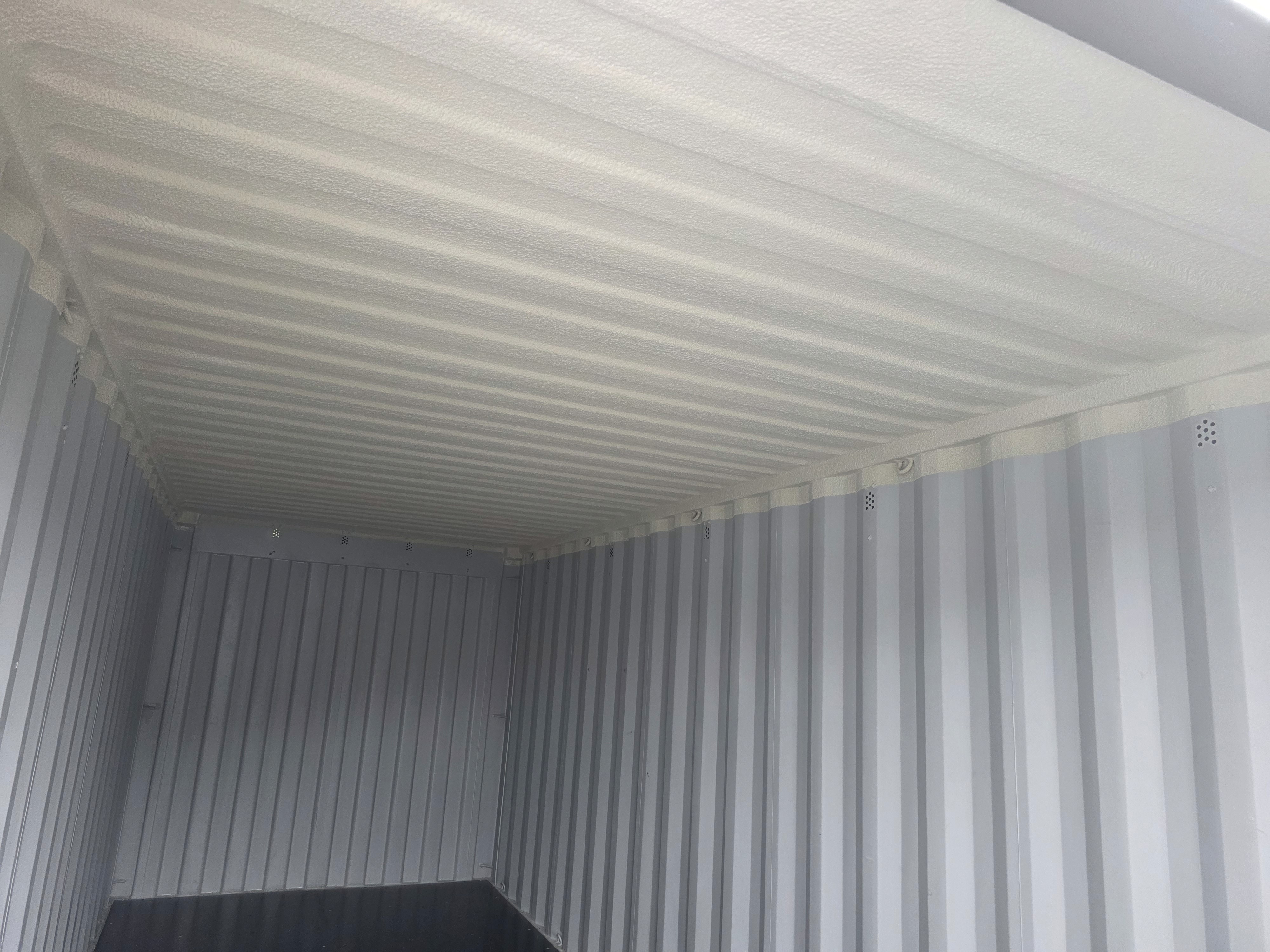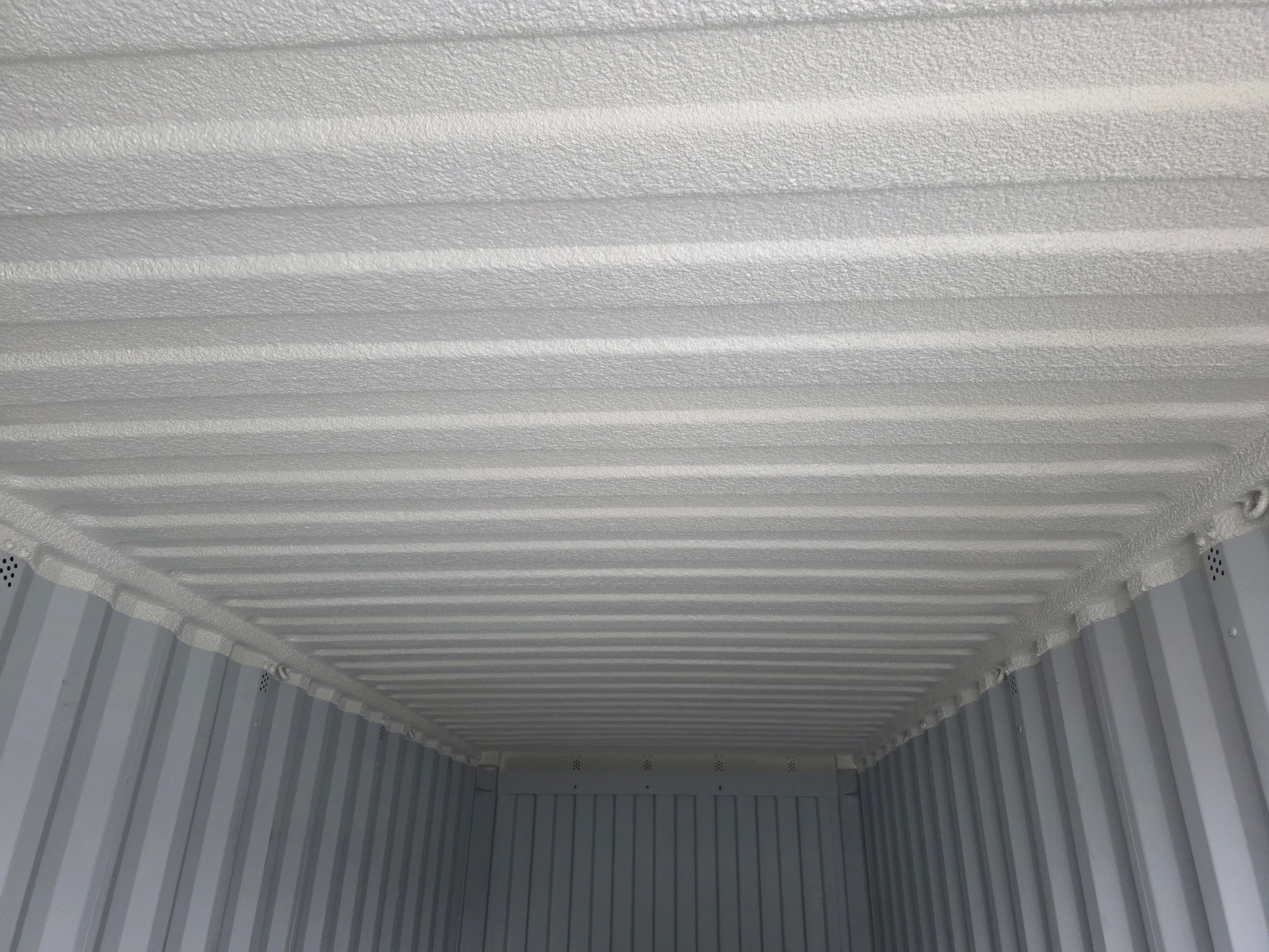 Our team applied spray foam insulation to the interior roof surfaces of the containers, creating a seamless barrier that reduces temperature differences and prevents condensation from forming.