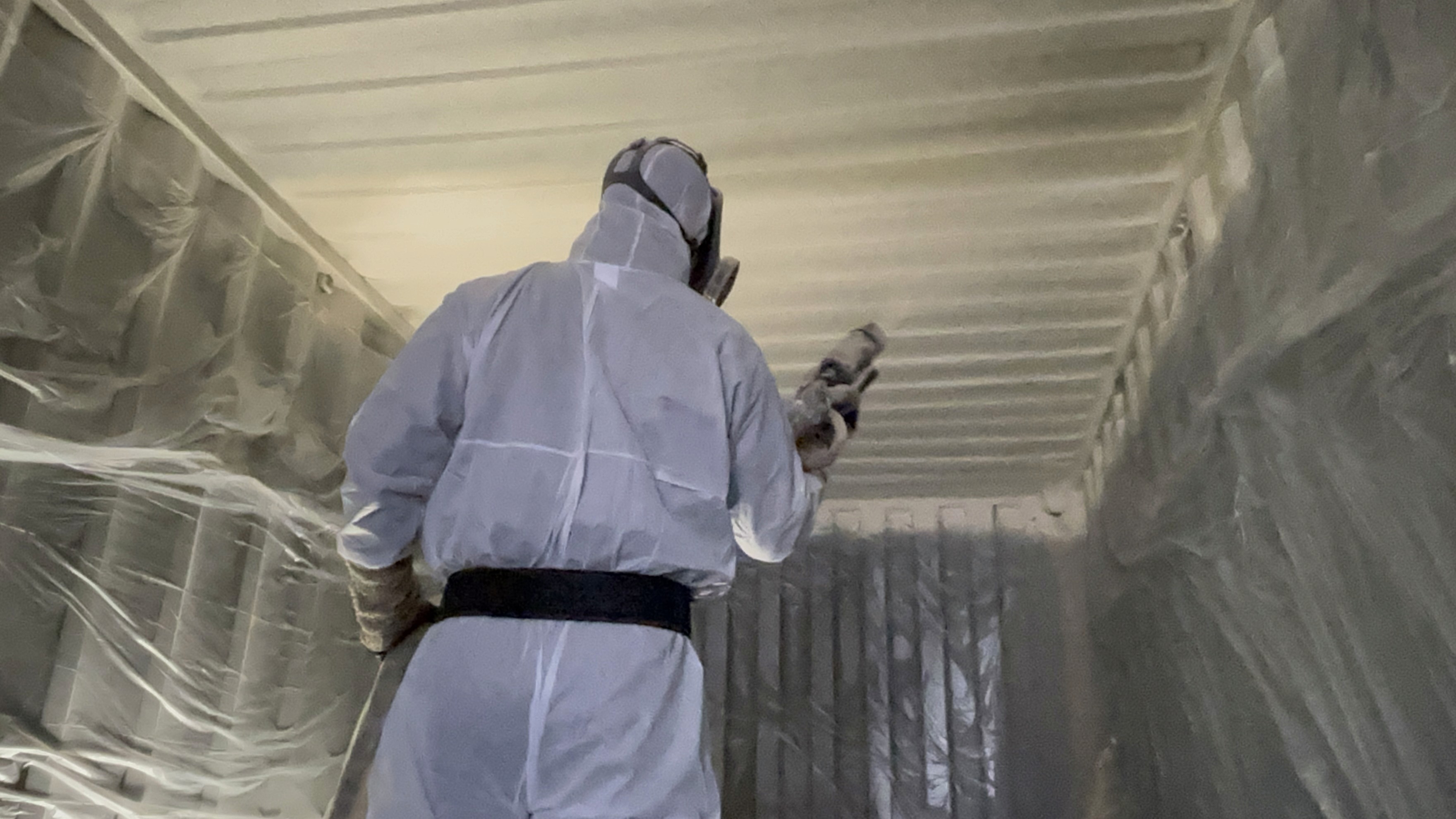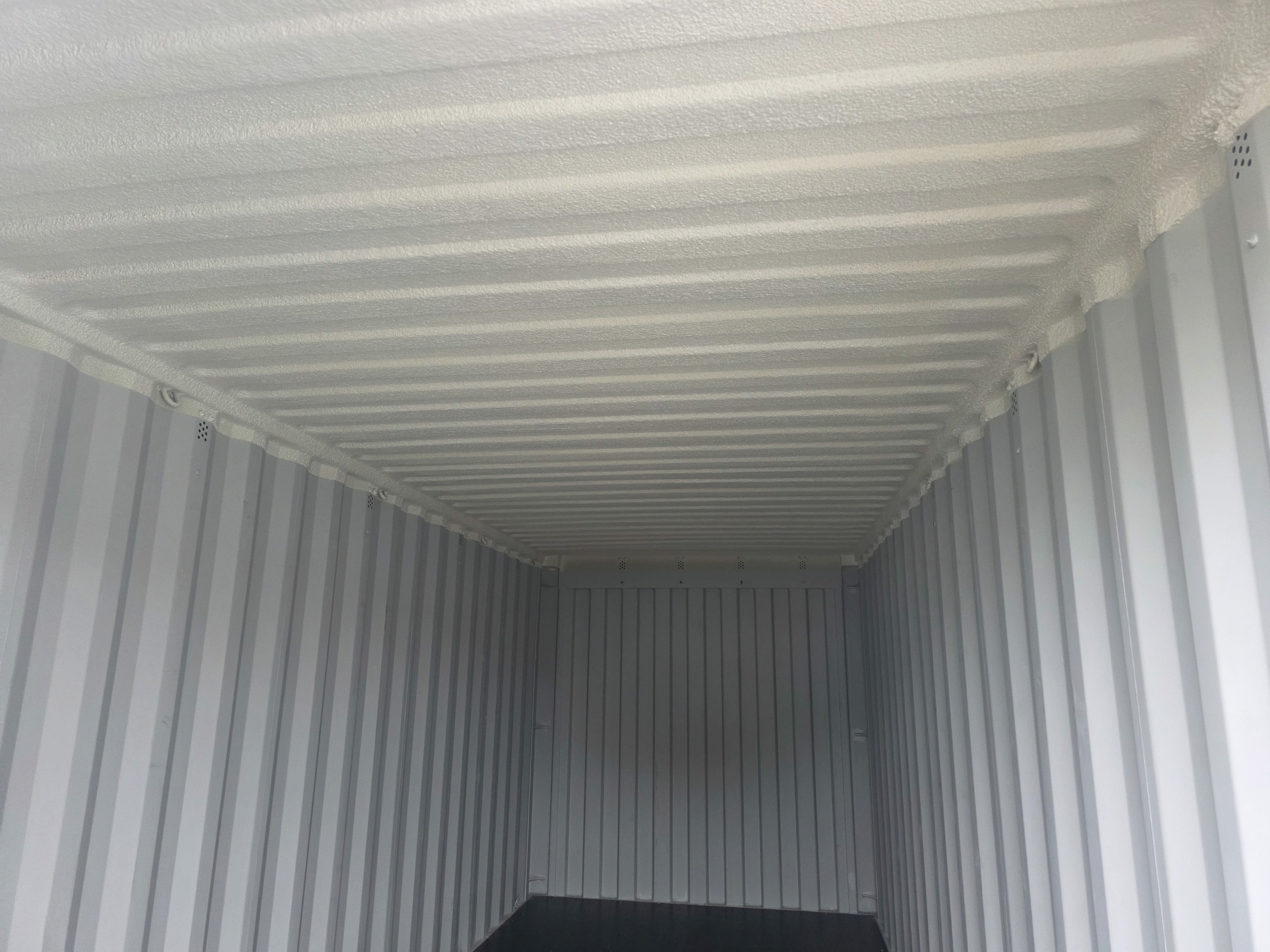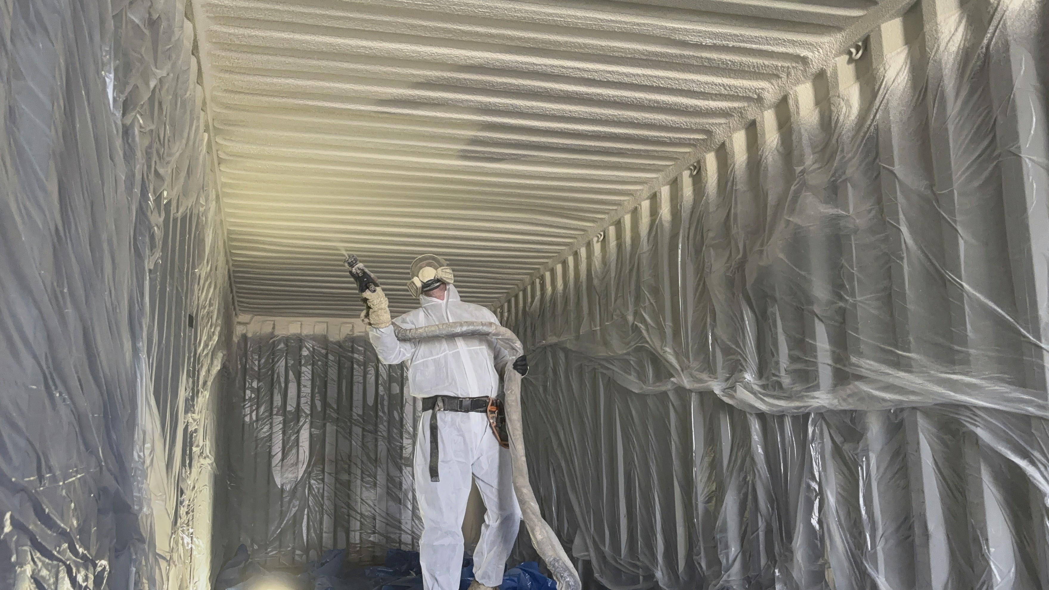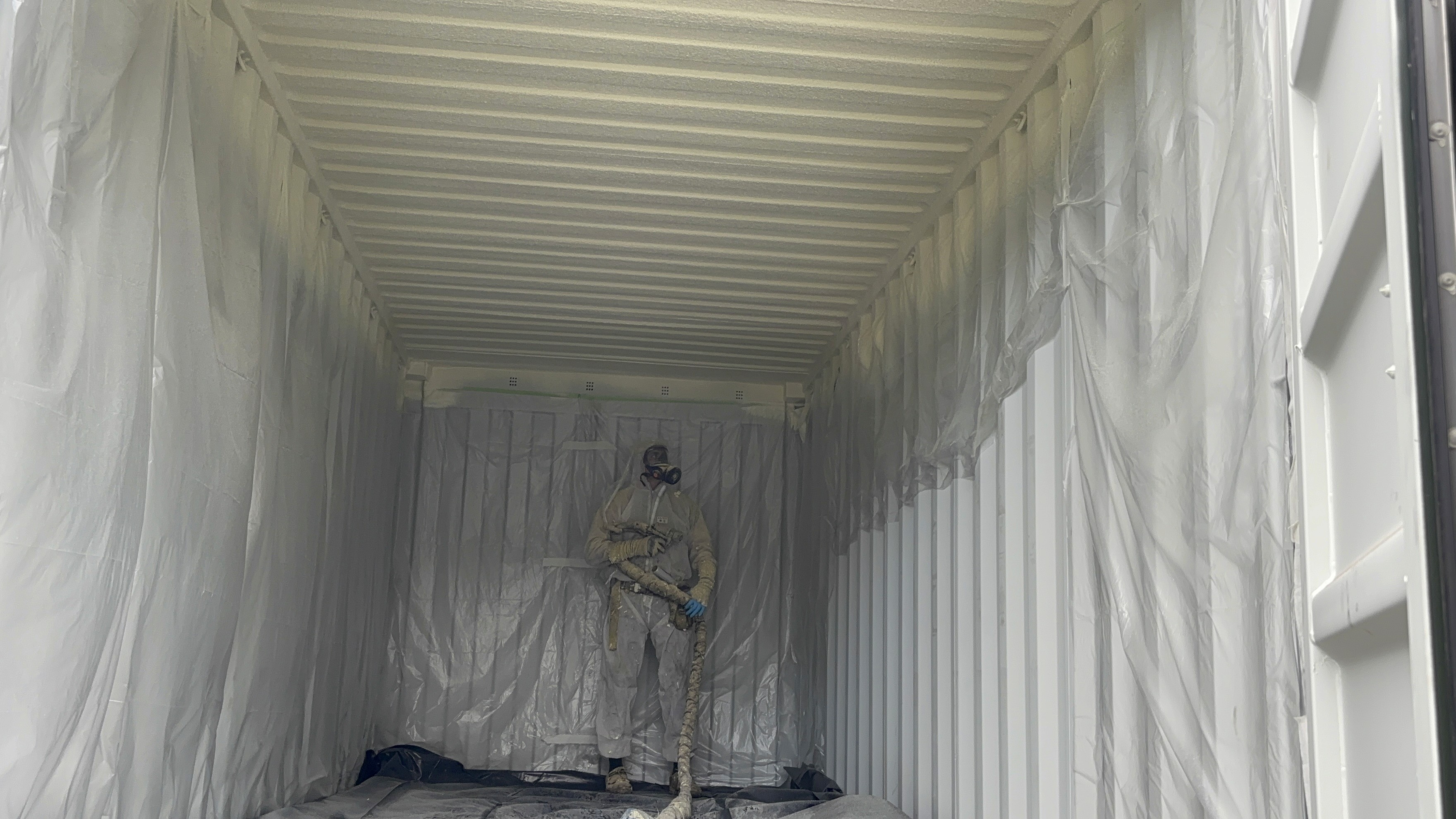 Our team applied spray foam insulation to the interior roof surfaces of the containers, creating a seamless barrier that reduces temperature differences and prevents condensation from forming.
