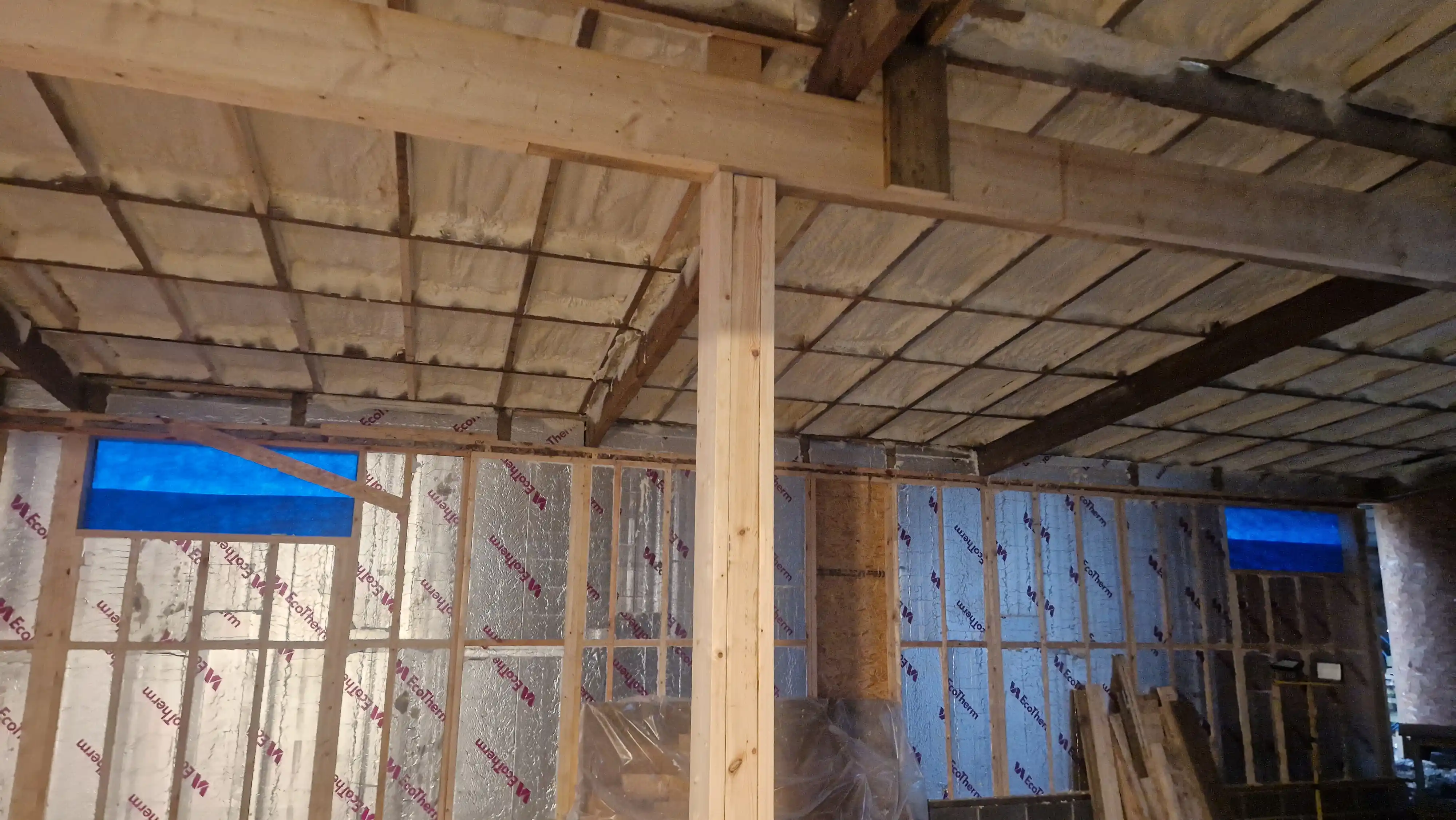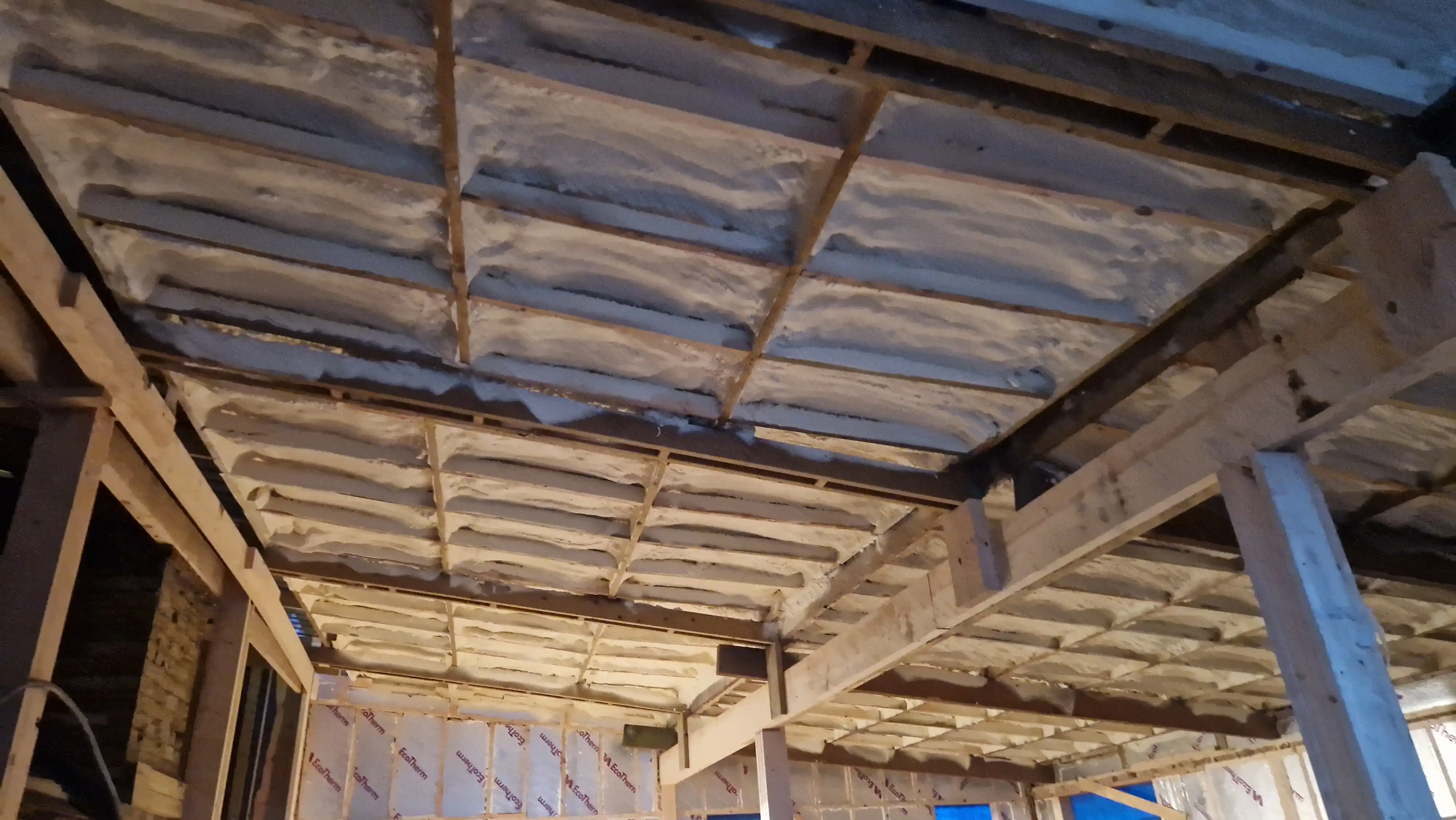 Spray Foam Application – Closed-cell spray foam insulation was applied to the underside of the roof, creating a seamless thermal and moisture barrier.