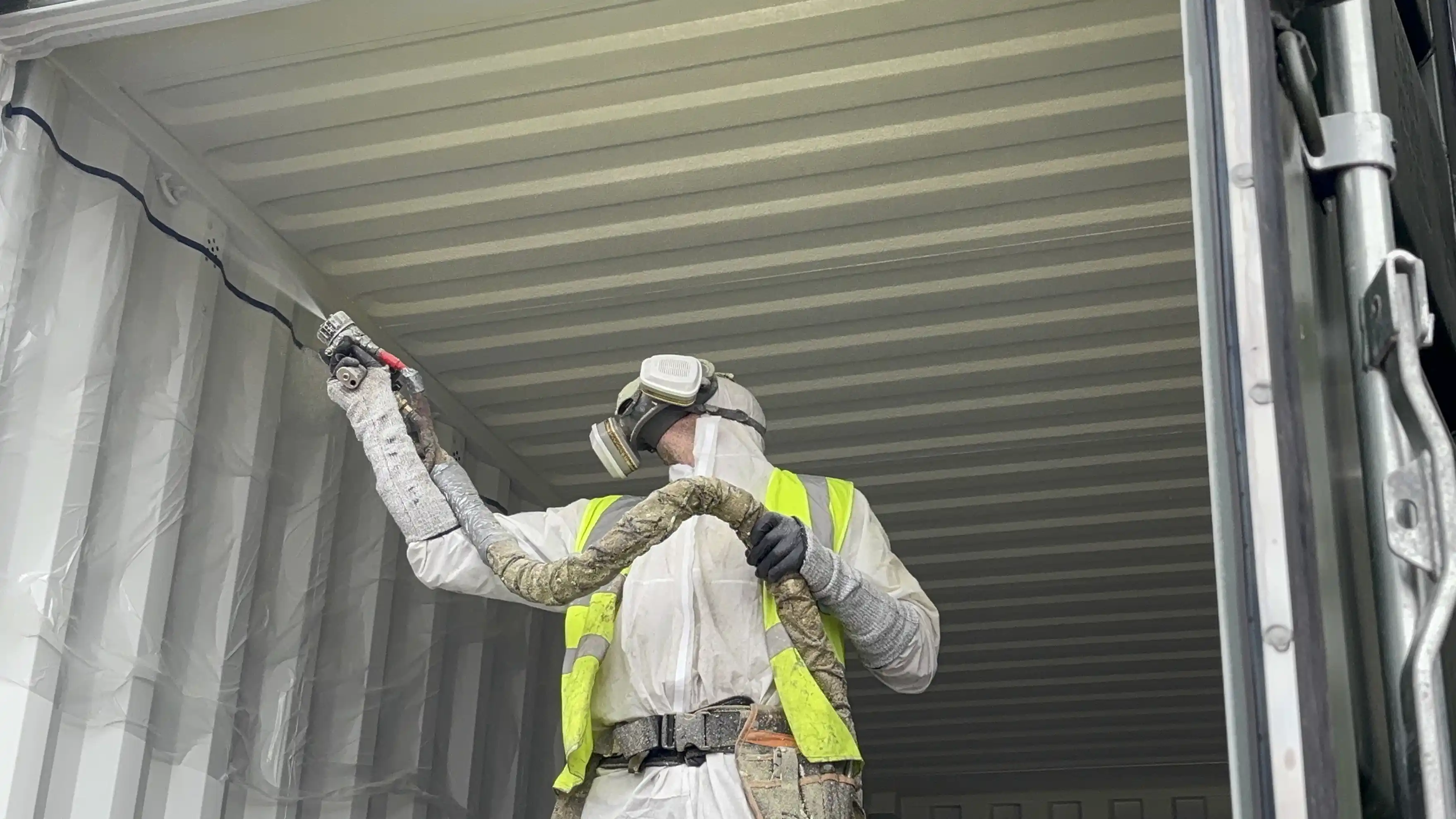 This type of insulation is ideal for industrial buildings, commercial spaces, workshops, and shipping containers where moisture control and energy savings are essential.