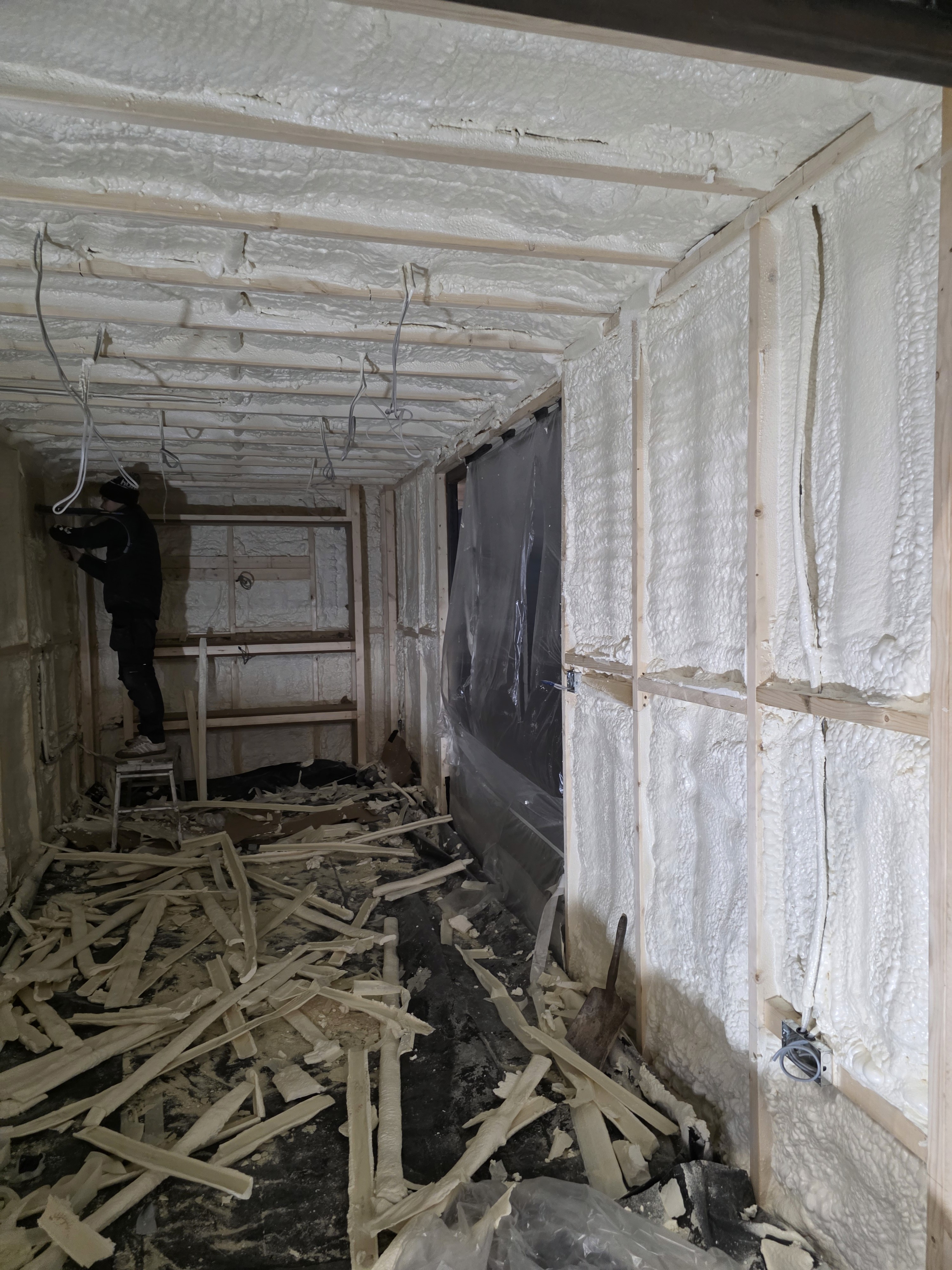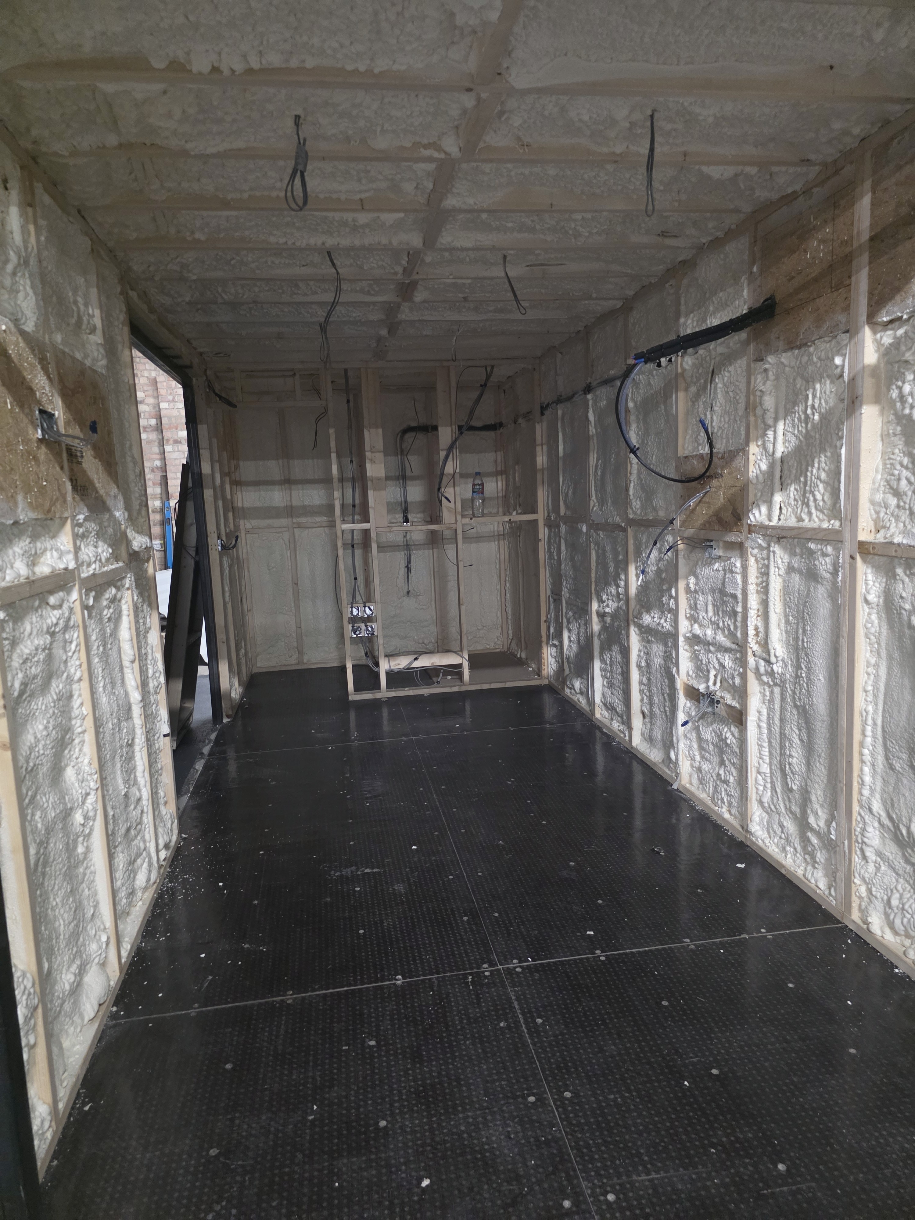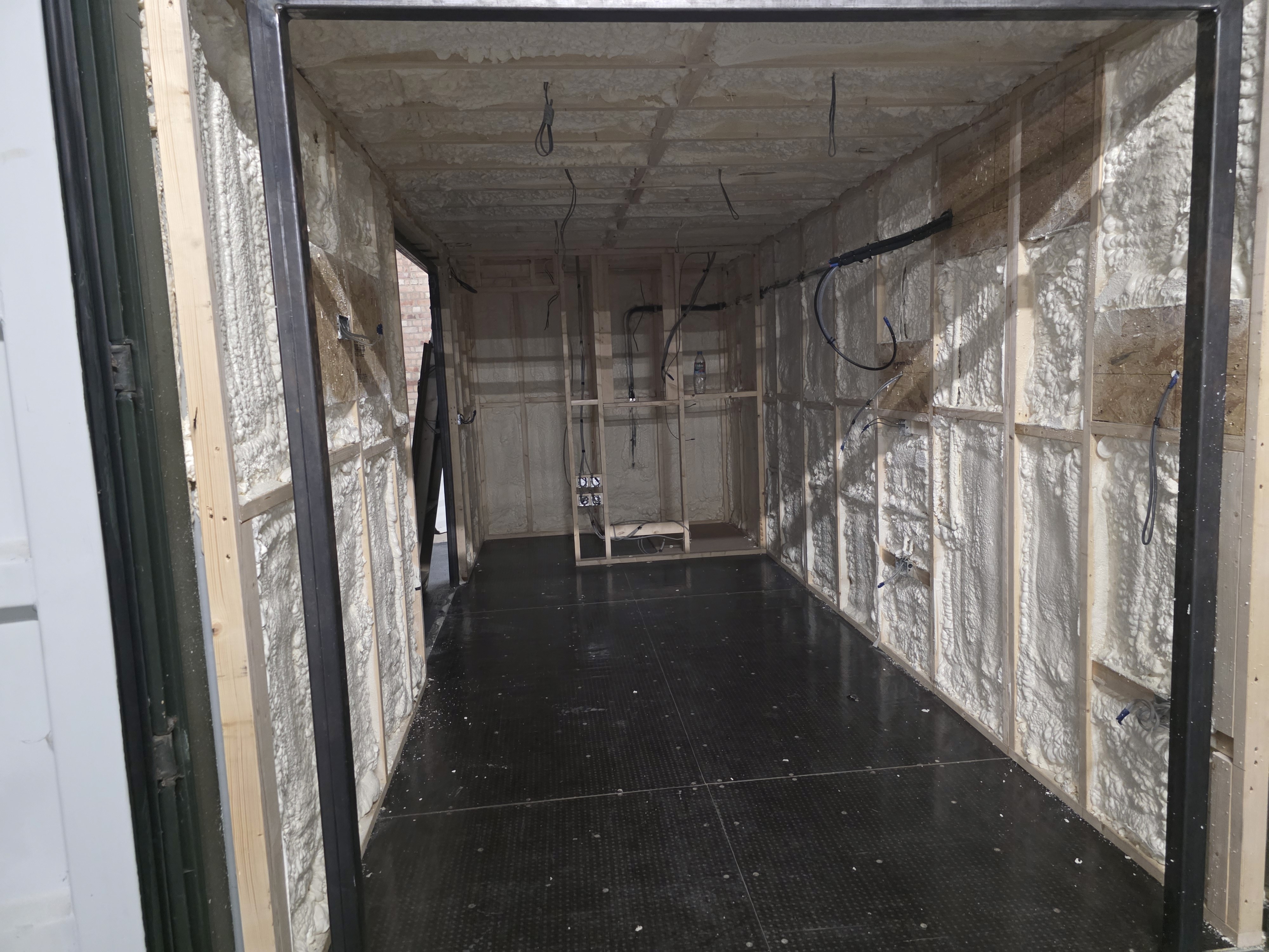 The project involved insulating the entire container interior, including the roof, walls and floor, creating a continuous insulation layer across all internal surfaces.