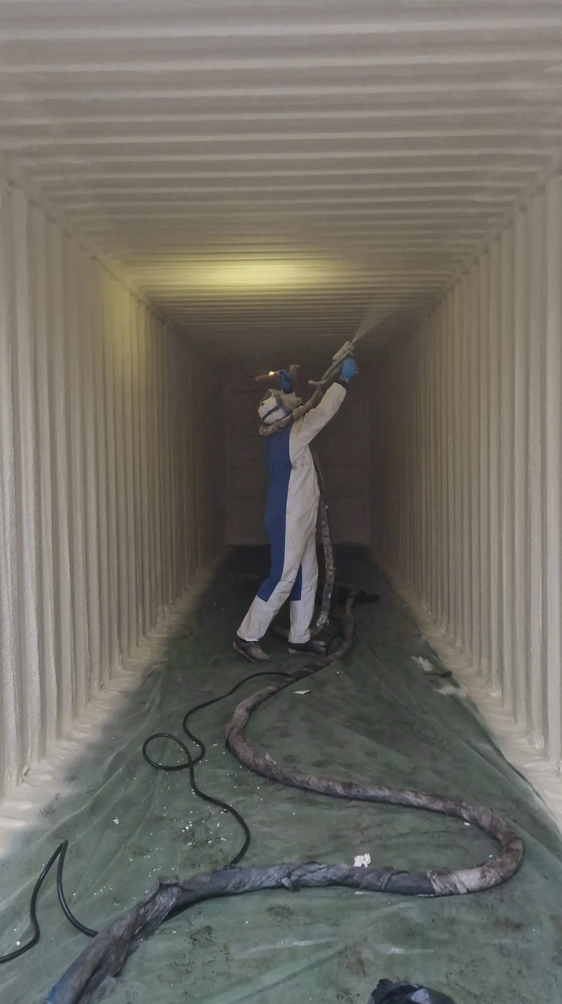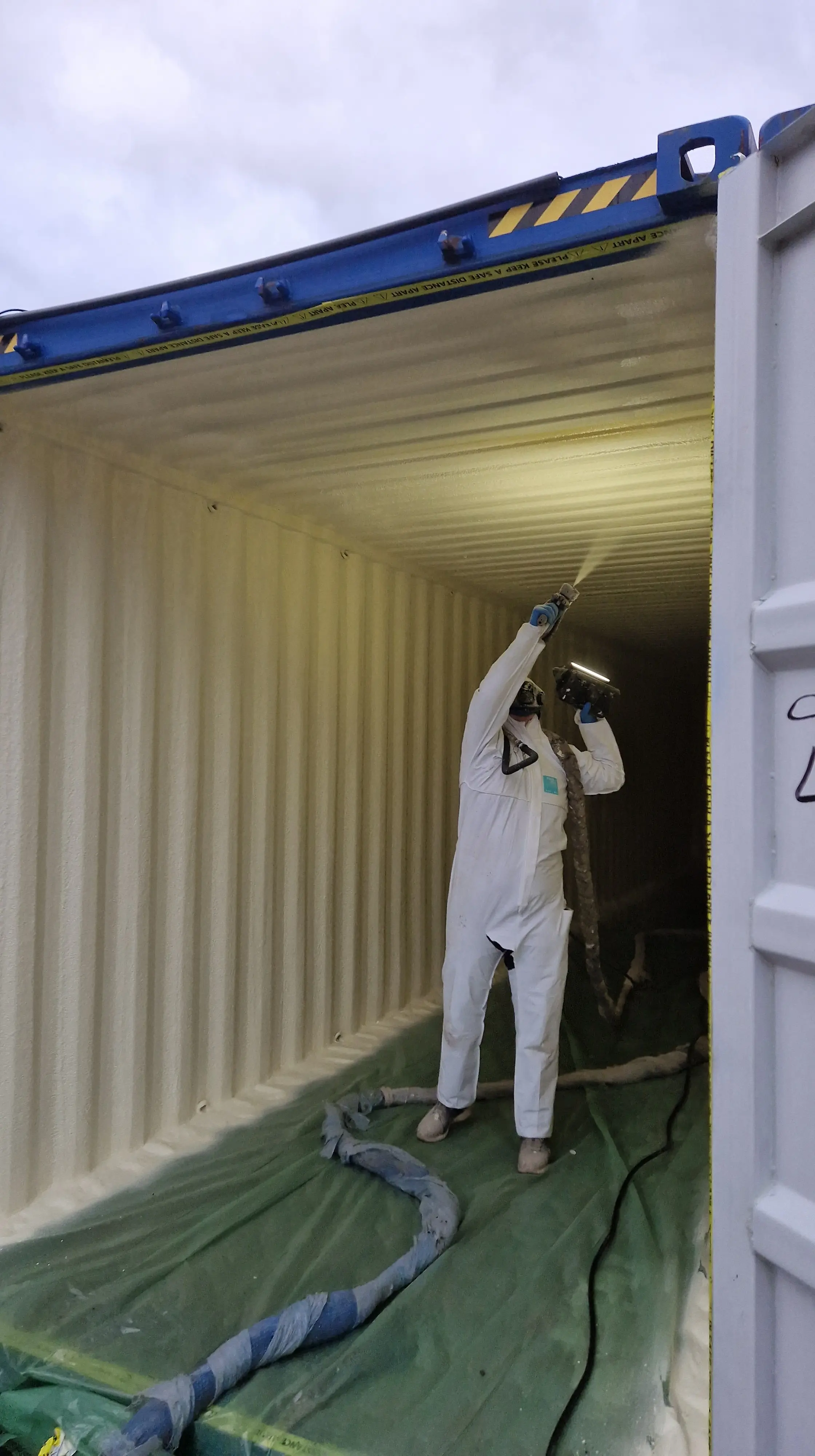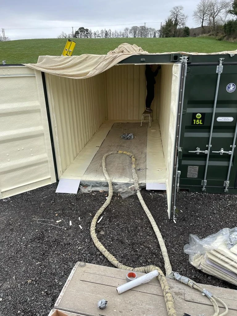 Spray foam insulation creates a seamless thermal barrier on the steel surface, preventing moisture build-up and significantly improving internal conditions for container storage.